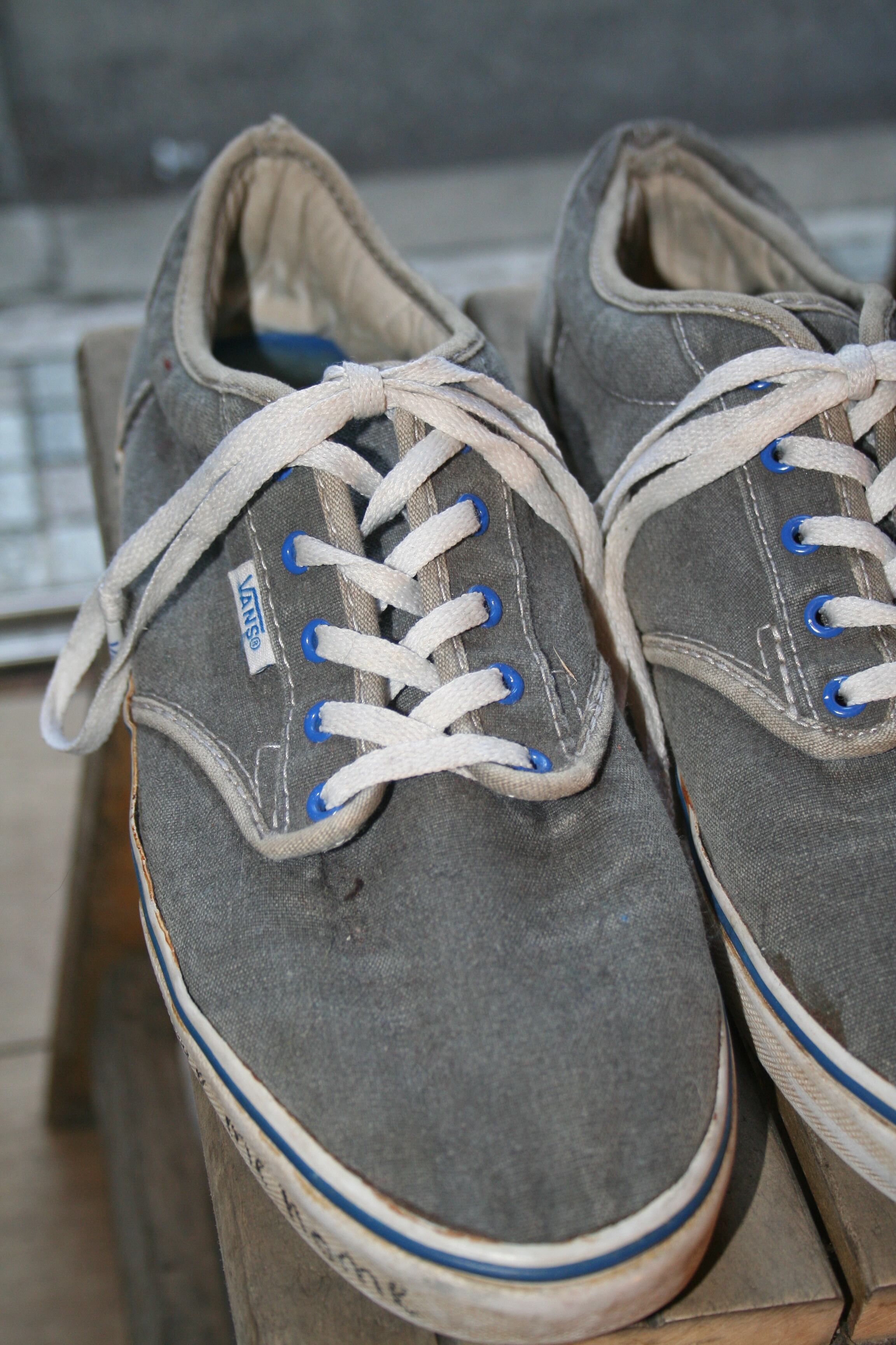 新品では出せない古着ならではの独特なフェード感。サイドテープには前者が好きなアーティストへの愛のメッセージが込められています。